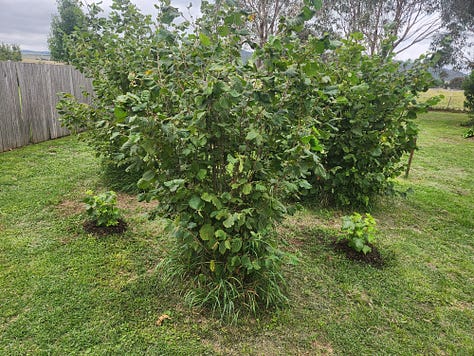 On the weekend I finally got around to digging out the blueberries that were overgrown by my weeping Cercis canadensis. I planted them at the back of my ‘Canadian Forest’, weeded a circle of grass around them, sprinkled some acidic fertiliser, a good drink of Seasol and a thick layer of ‘Who Flung Dung’ mulch. They look great and I hope my efforts are enough for them to recover from their ordeal. I also grabbed a couple of Blackcurrant bushes (Ribes nigrum) and planted them in my Hazel grove. The next job will be to weed the Hazel grove but I think that’s plenty done for the week!